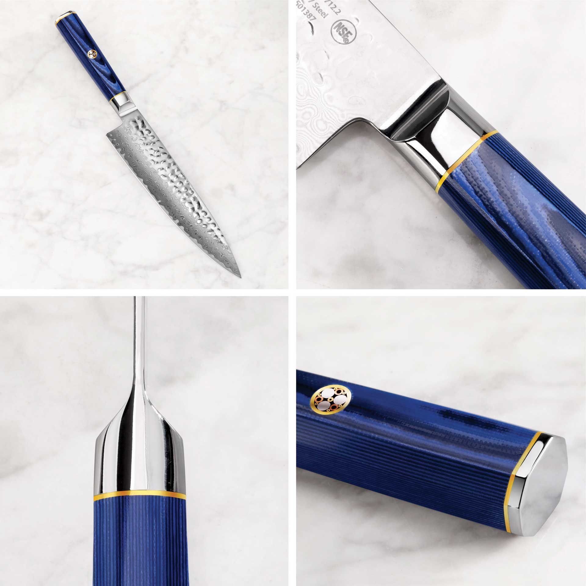 A chef wants a connection with the tools they use. Some prefer a light, nimble knife while others work better with a heavy, large-handled knife. Culinary professionals, home chefs, foodies, and cooking enthusiasts also want their tools to aesthetically connect with their stories. This is the reason we have 32 patented designs, some of which feature our unique, patented angled bolster that perfectly accommodates a natural, firm pinch grip.